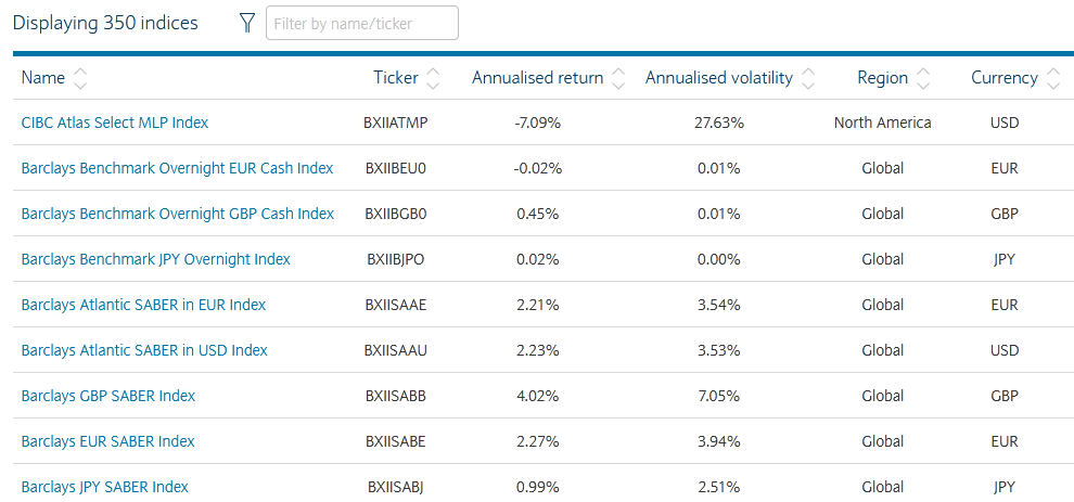 Здесь хорошо видна связь доходности с волатильностью. С 1973 года индексы Bloomberg Barclays, наряду с MSCI, стали широко используемыми индексами для инвесторов с фиксированным доходом. Флагманские индексы с фиксированной доходностью включают в себя США, Евро, Азиатско-Тихоокеанский регион и глобальный сектор, муниципалитеты США, высокодоходные и развивающиеся рынки.