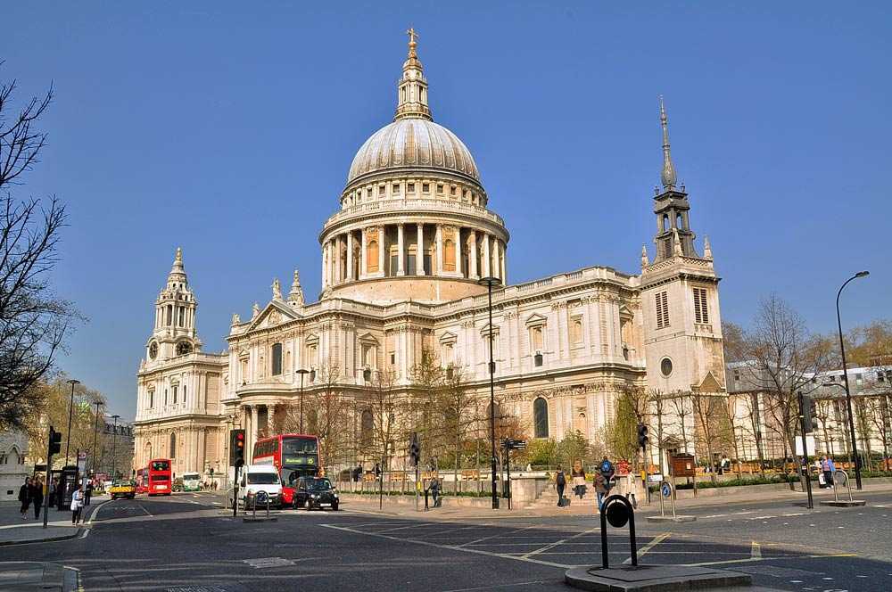 В самой высокой точке Лондона – на Лангейт Хилл стоит собор Святого Павла, чей круглый купол возвышается над городом. Этот крупнейший в Европе англиканский собор является резиденцией лондонского епископа. Его официально открыли в 1708 году, а до него здесь же последовательно стояли 4 предшествующих храма, три из которых были уничтожены пожарами, а один был разрушен в 961 году при набеге викингов. На башне собора есть смотровая площадка, дающая прекрасный обзор города, ничуть не хуже, чем с «Лондонского глаза». Под куполом храма есть три удивительные галереи: из камня, позолоченная, а также галерея шёпота, в которой наблюдаются очень интересные акустические эффекты. Купол собора является копией купола базилики Святого Петра в Ватикане, что сделало его одной из узнаваемых лондонских достопримечательностей. На колокольне храма установлено 17 колоколов, а в нём часто устраиваются концерты духовной музыки. В 1860 году был изменён интерьер собора, для чего прихожанам пришлось организовать специальный фонд. Нынешние интерьеры храма привлекают скульптурами, ажурными решётками, великолепной мозаикой. Именно здесь проходило венчание принца Уэльского Чарльза и Дианы Спенсер.