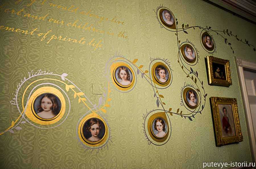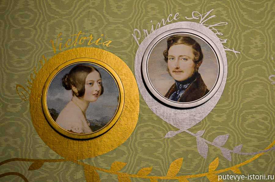 Одна из комнат Кенсингтонского дворца, оформленная в темных тонах, посвящена этому трагическому периоду в жизни королевы.