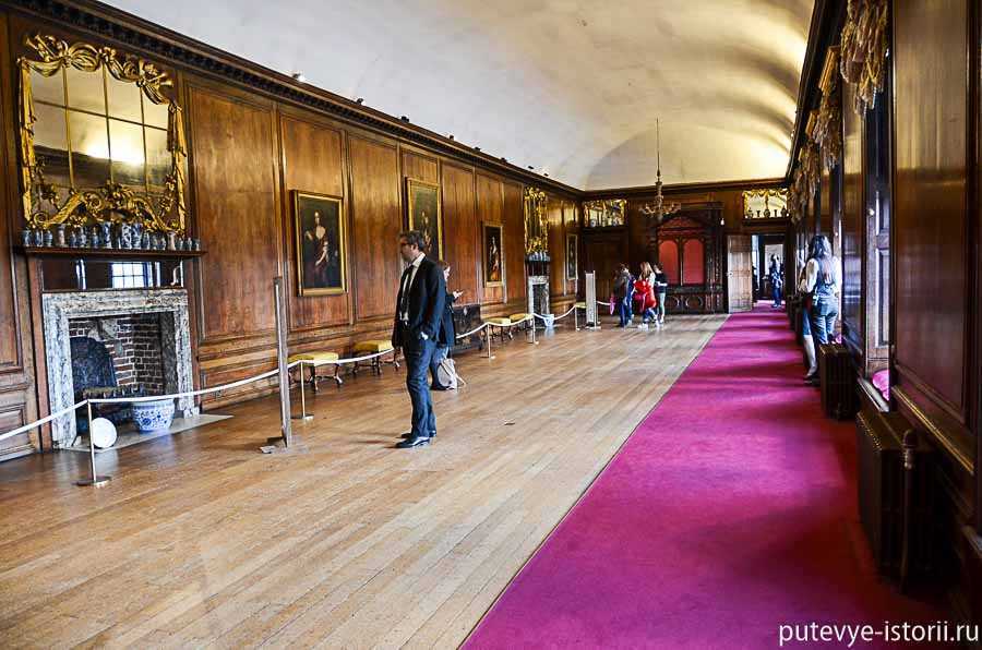 и попадаем в длинную залу, обитую деревянными панелями – галерею Королевы