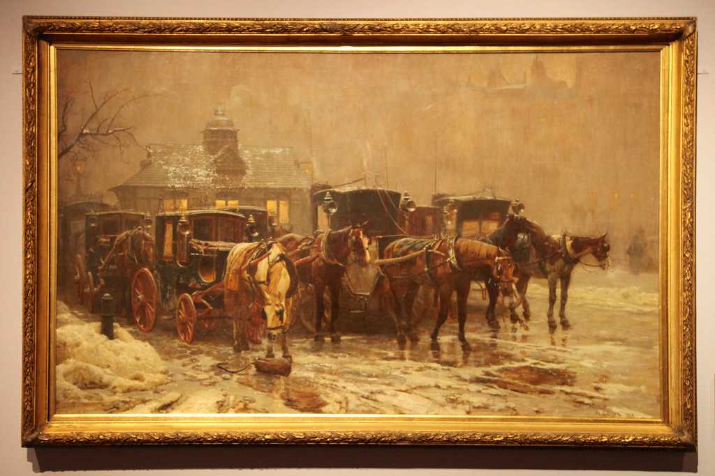 Кто был на моем пешем туре по Strand’у (или просто читает внимательно мой instagram), те помнят историю про зеленые домики для кэбменов. На выставке впервые увидел их в цвете на картине того периода