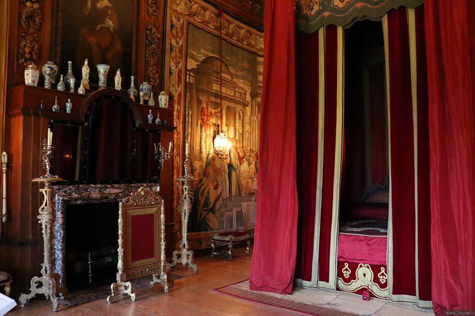 Главную караульную комнату. Это место предназначено для стражи. Но придворные и послы ожидали в ней назначенной аудиенции. Помещение поделено гобеленами на маленькие сектора: так легче было сохранять тепло.