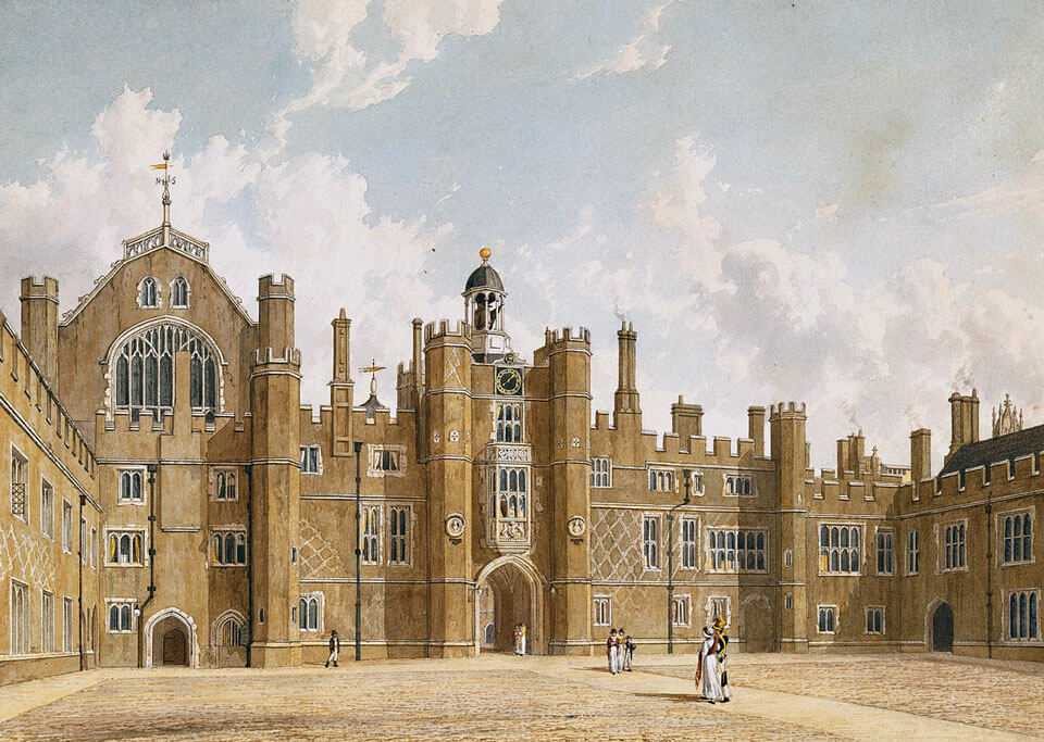 Дворец построил архиепископ Йоркский Томас Уолси в начале 16 века. В 1514 году прелат перекупил у Ордена Госпитальеров участок земли на берегу Темзы. Строительство началось в 1515, а окончилось в 1525 году. Создавали ансамбль архитекторы из Италии, они же выбрали стиль: сочетание готики и ренессанса. Назначение комплекса – личная резиденция кардинала. Но скоро Уолси был вынужден подарить дворец второму королю из династии Тюдоров – Генриху VIII. Это подарок со значением: архиепископ рассчитывал наладить отношения с властью.