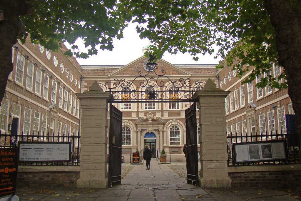 Под этой вывеской скрывается самое старое здание, которое существует в сердце Ливерпуля. Чтобы стало понятно, много лет назад в помещении проходили благотворительные уроки грамматики, которые посещали дети из бедных семей. А название Bluecoat произошло от голубого цвета школьной формы.