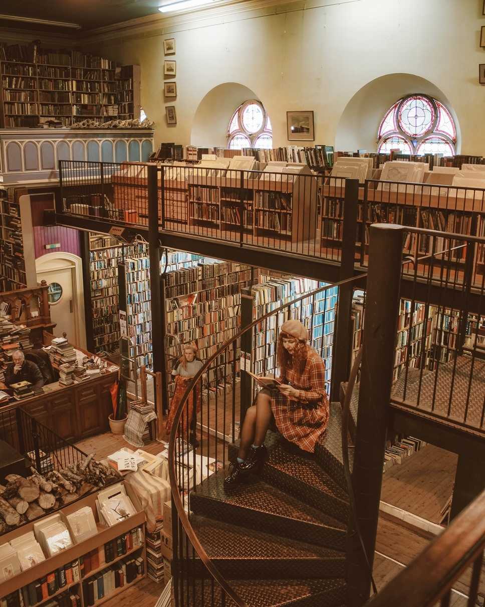 Так же здесь есть гигантский камин и красивая архитектура, так как магазин расположен в старинной церкви. Это отличное место, чтобы спрятаться от дождя или просто побродить среди восхитительного выбора поддержанных книг.