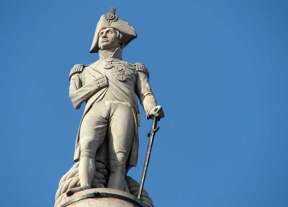 На пьедестале колонны расположены 4 бронзовые панели, которые отлиты из трофейных французских пушек, а изображены на панелях знаменитые сражения Нельсона: сражения при Сент-Винсенте (1797 г), при Абукире (1798 г), при Копенгагене (1801 г) и при Трафальгаре (1905 г). Вокруг статуи находятся скульптуры 4 львов, выполненные из гранита. Высота каждой скульптуры составляет более 6 метров.