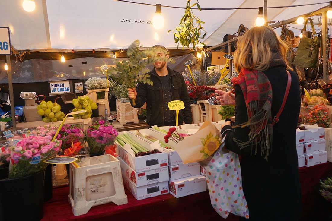 Продавцы закусок соблазняют прохожих сэндвичами с рыбой, картофелем фри, поффертже (миниатюрными голландскими блинами, посыпанными сахарной пудрой) и строупвафелями с карамельным сиропом. Если после всего этого у вас в животе останется место для еды, то окрестности рынка буквально кишат уютными кафе и ресторанами.
