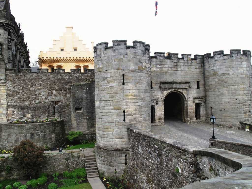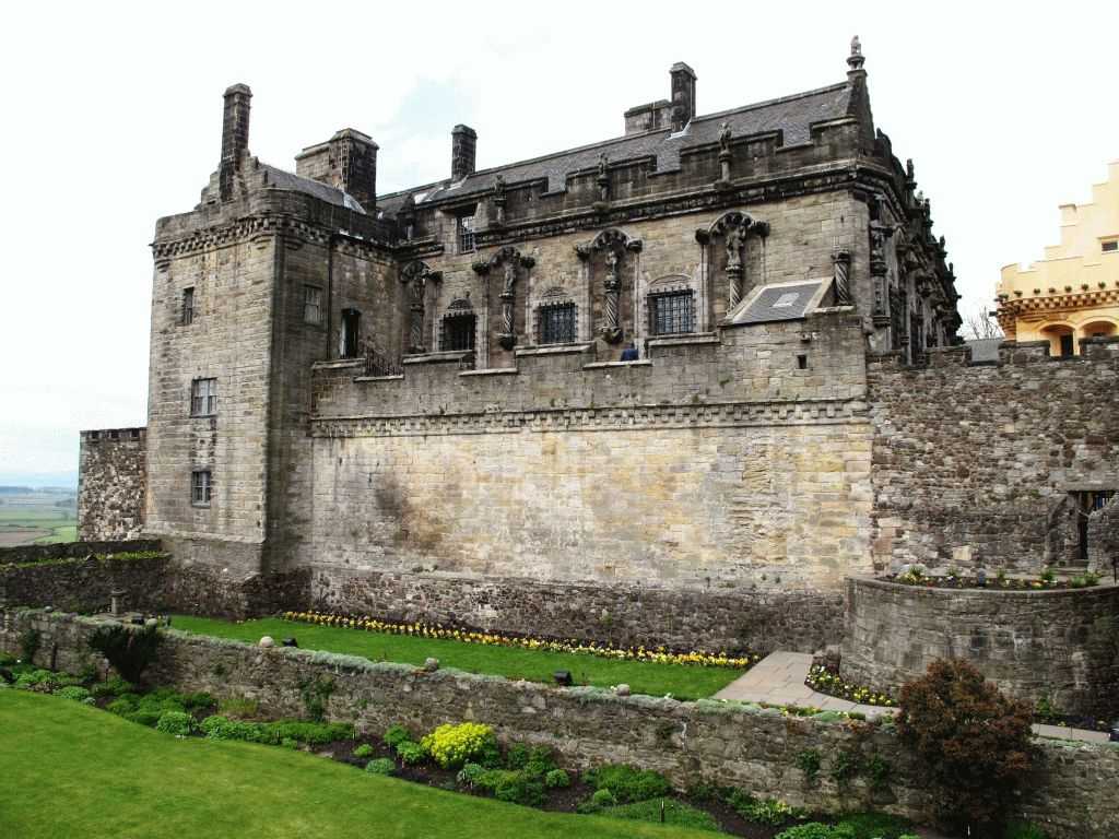 Замок Стирлинг возвышается на скалистом отроге. Это одновременно и крепость, и королевский дворец. Впервые он упомянут в документах 1124 года, но большая часть построек относится к XVI веку. Замок считается сейчас одним из лучших примеров архитектуры Ренессанса в Шотландии.