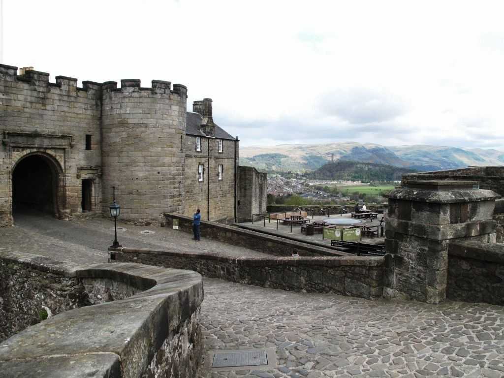 Перед замком – статуя Роберта Брюса, короля Шотландии, разбившего в 1314 году в окрестностях Стерлинга войска короля Эдуарда II. Он изображен вкладывающим меч в ножны. Место этой битвы (Баннокберн) находится в трех километрах южнее города (Glasgo road), там сейчас находится Центр наследия Баннокберна