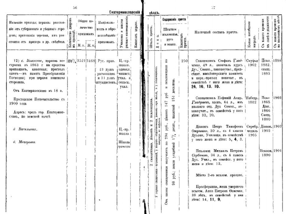 Памятная книжка за 1908 год Екатеринославской губернии. Церковных приход, Екатеринославский уезд.