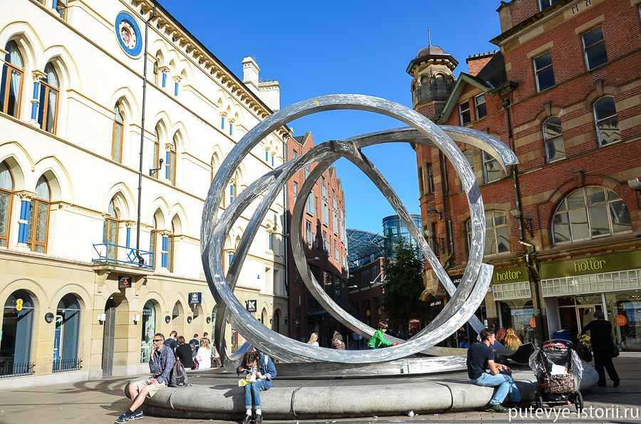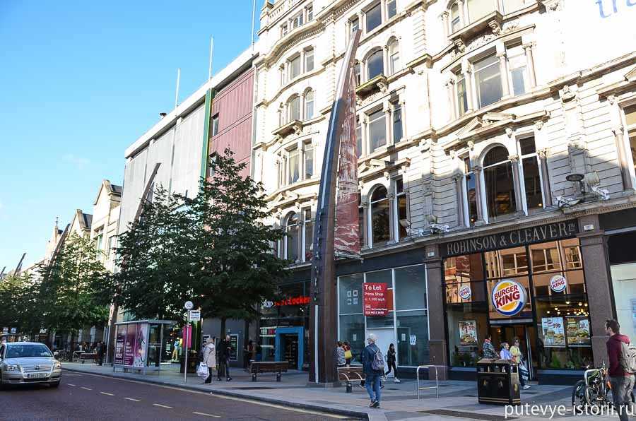 Взяв карту, идем по улице Donegall place. Это магазинно-сувенирная улица. Вдоль ее правой стороны установлены металлические дуги — памятники самым знаменитым лайнерам, сделанным на верфях Белфаста. Среди них вы найдете и знаменитый Титаник, и двух его «братьев»: Британик и Олимпик.