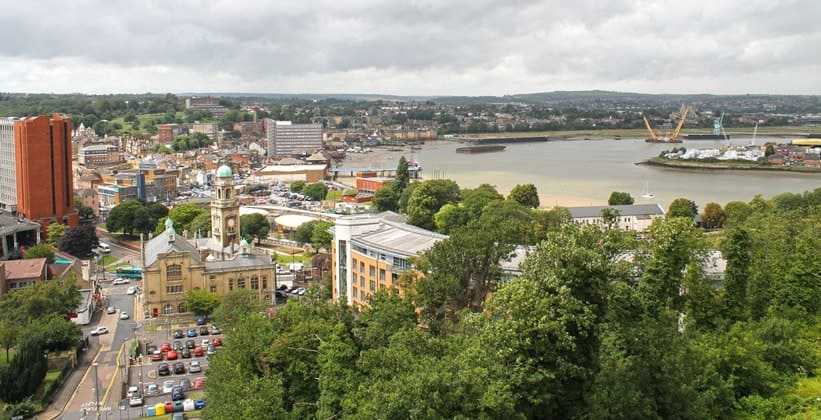 Автомагистрали M2 и High Speed 1 пересекают долину Медуэй (к югу от Рочестера).
