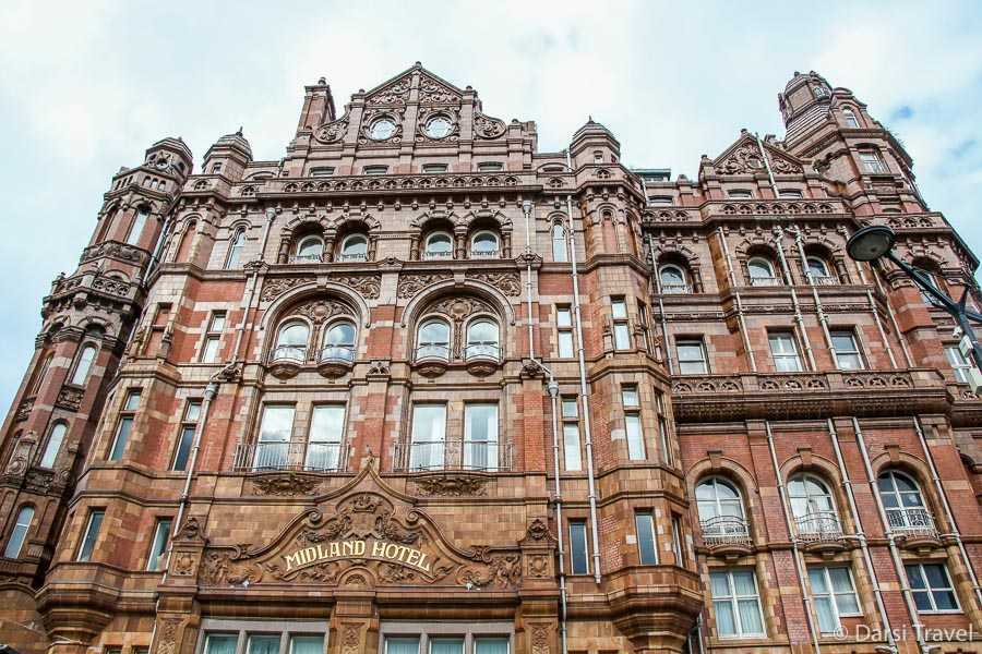 Что касается других гостиниц Манчестера, прогуливаясь, мы нашли очень красивый отель Midland Hotel, расположенный напротив бывшего центрального железнодорожного вокзала Манчестера, а теперь выставочного центра Манчестера.