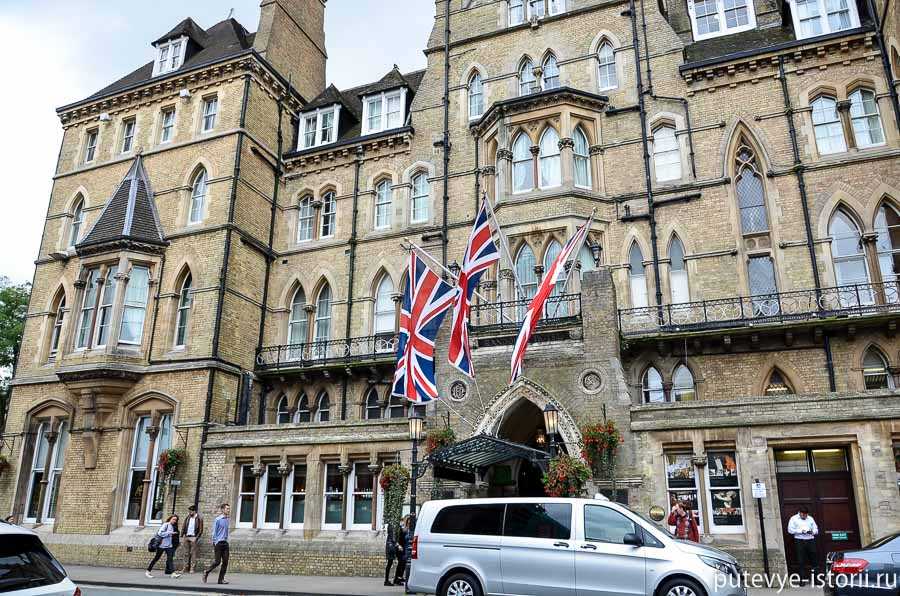 Налево от мемориала отходит улица Beaumont street. Первое здание слева — пятизвездочный отель Macdonald Randolf, симпатичное здание в готическом стиле.