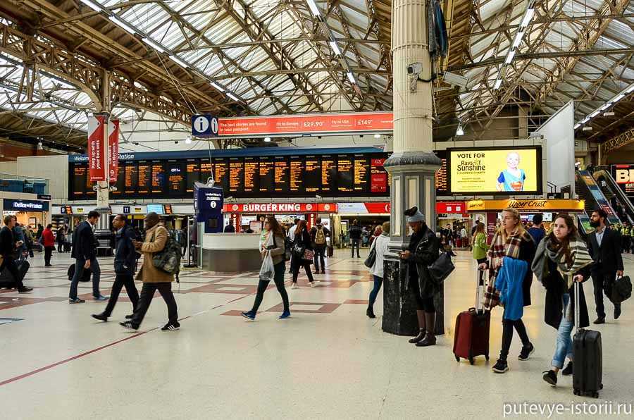 Итак, ранним утром мы вышли из метро Victoria и оказались в центре железнодорожного вокзала. На вокзале царила утренняя суматоха.