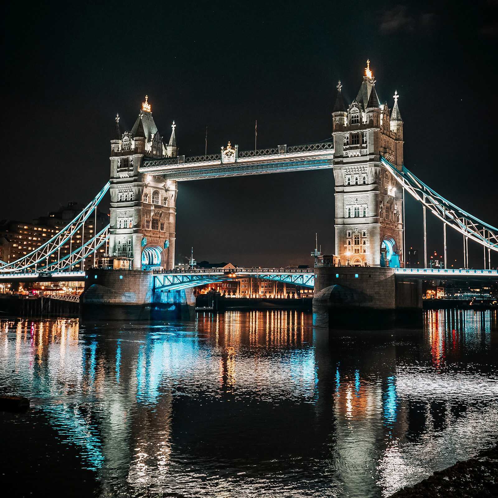 Тауэрский мост ночью. Фото: simonardo / unsplash.com.