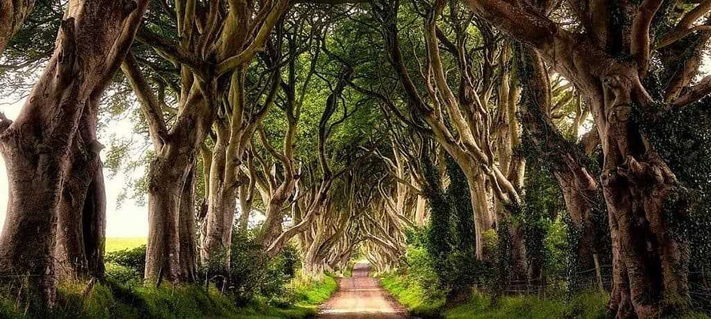 Темные изгороди – это аллея, засаженная буковыми деревьями, которая находится на тихой дороге недалеко от города Баллимони в графстве Антрим, Северная Ирландия. Деревья, которым сейчас почти 250 лет, очень атмосферные. Они образуют арку над дорогой, и это выглядит действительно уникально. Популярным это место стало благодаря появлению в телевизионных шоу и фильмах, таких как «Игра престолов». Сейчас миллионы туристов приезжают сюда, чтобы сделать фотографию на этой таинственной дороге.