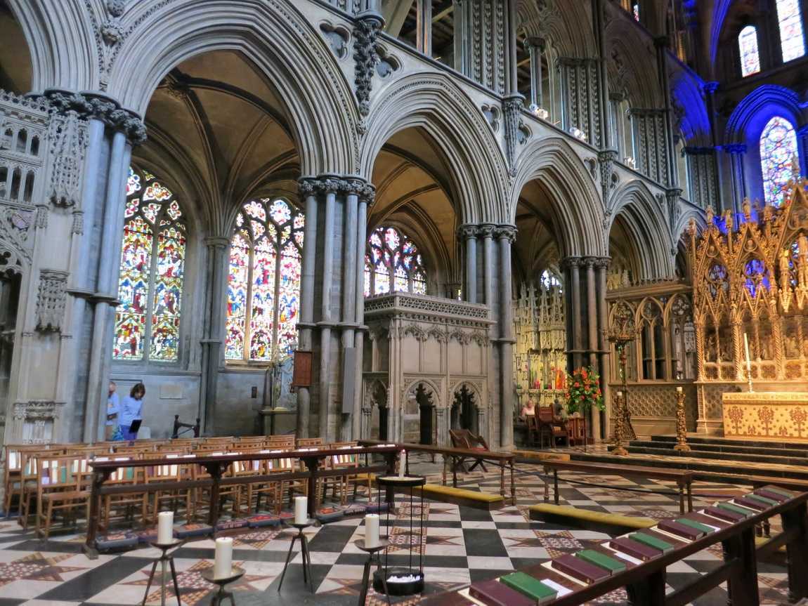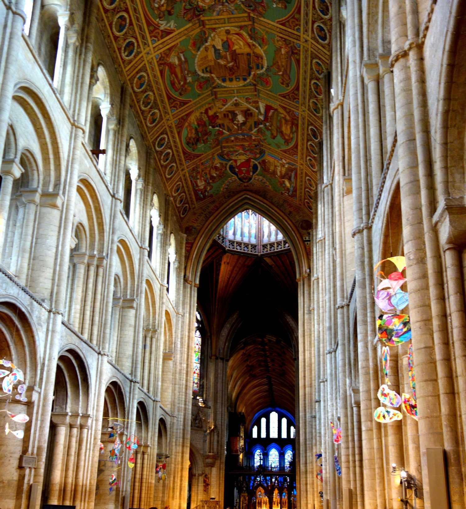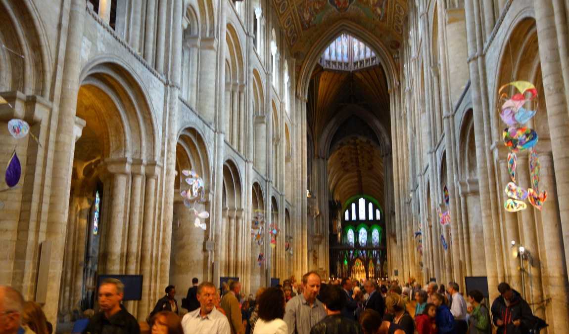 После службы фотографируем собор изнутри. Великолепный расписной потолок главного нефа находится на высоте 26 м от уровня пола. На протяжении всей своей истории собор неоднократно разрушался, восстанавливался и перестраивался. Однако Илийский собор при строительстве не обошли бедствия: в ночь с 12-13 февраля 1322 г.,  в результате работ над фундаментом Часовни Леди, центральная башня пересечения Норман разрушилась. Работа над Часовней Леди было приостановлена. Вместо того,  чтобы эту башню заменить новой,  её  увеличили до восьмиугольника, удаляя все четыре оригинальных башни пирсов.