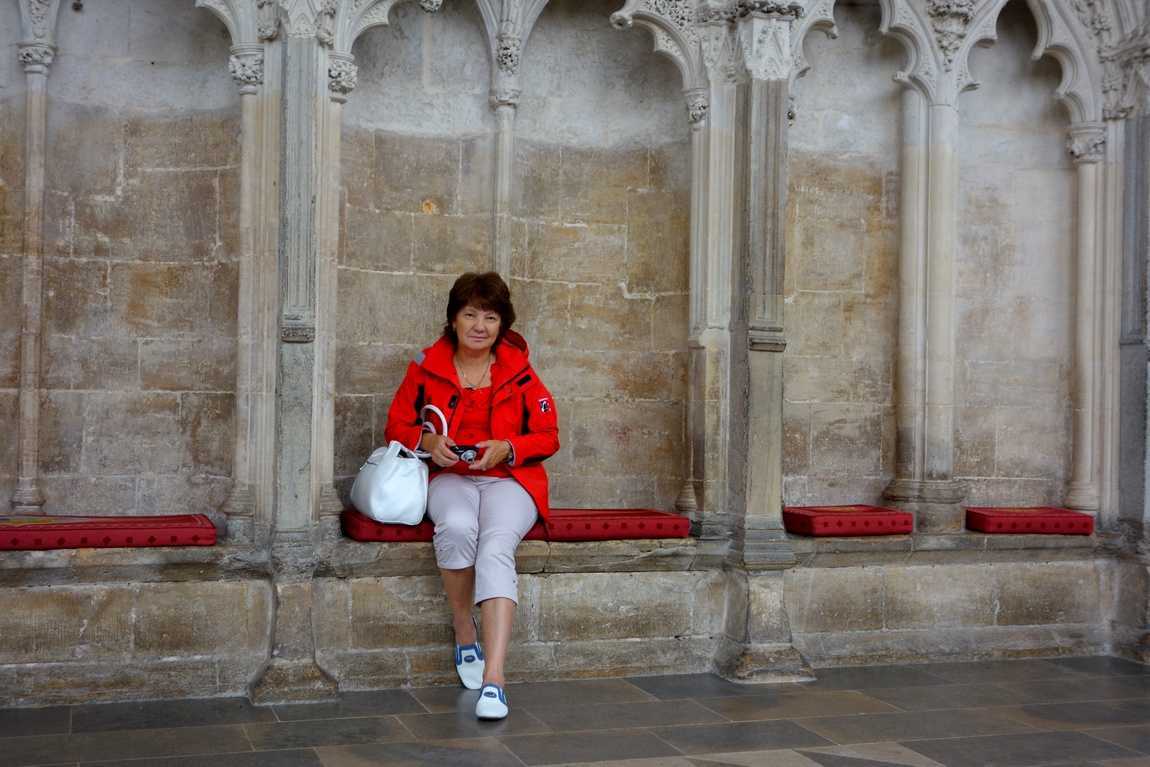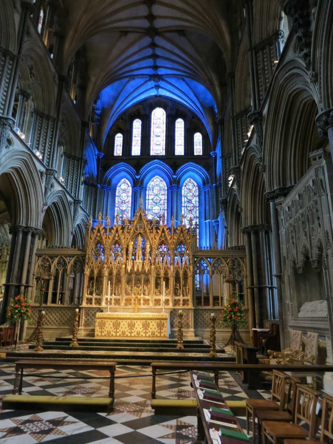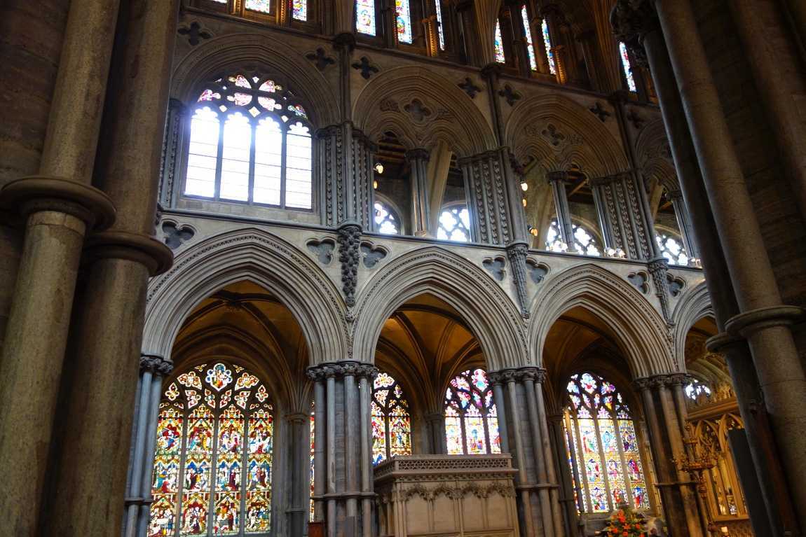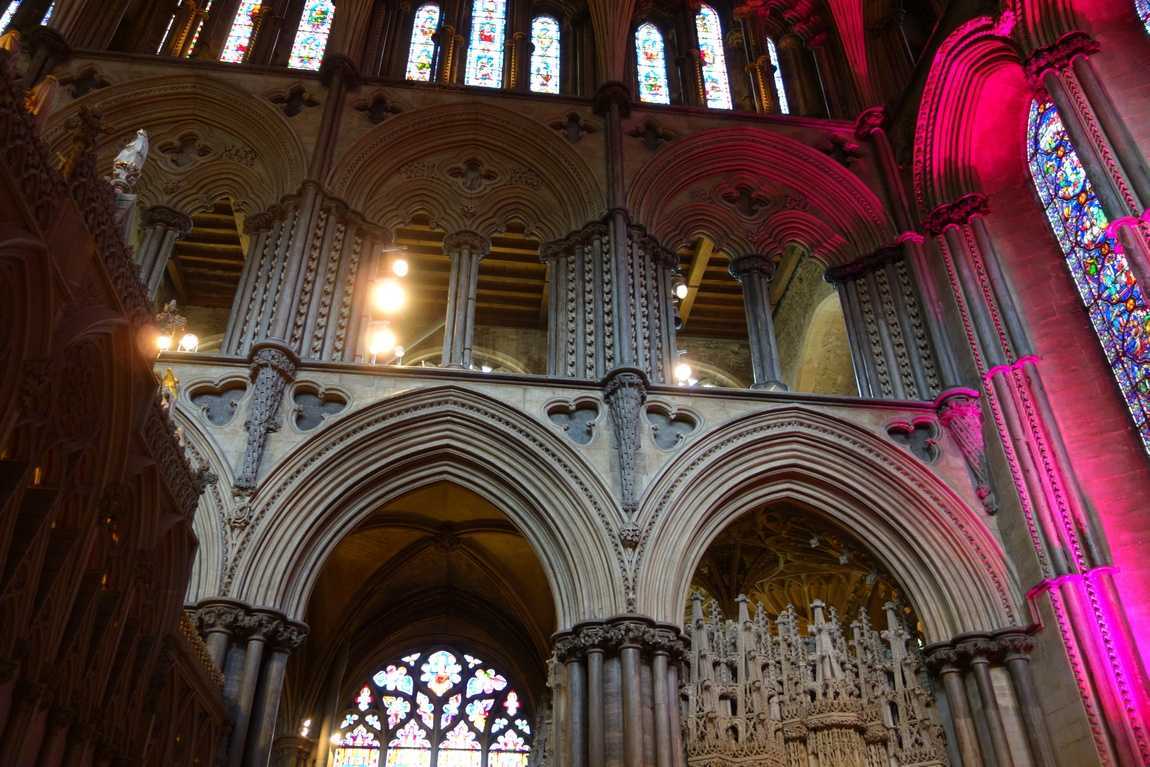 После службы фотографируем собор изнутри. Великолепный расписной потолок главного нефа находится на высоте 26 м от уровня пола. На протяжении всей своей истории собор неоднократно разрушался, восстанавливался и перестраивался. Однако Илийский собор при строительстве не обошли бедствия: в ночь с 12-13 февраля 1322 г.,  в результате работ над фундаментом Часовни Леди, центральная башня пересечения Норман разрушилась. Работа над Часовней Леди было приостановлена. Вместо того,  чтобы эту башню заменить новой,  её  увеличили до восьмиугольника, удаляя все четыре оригинальных башни пирсов.