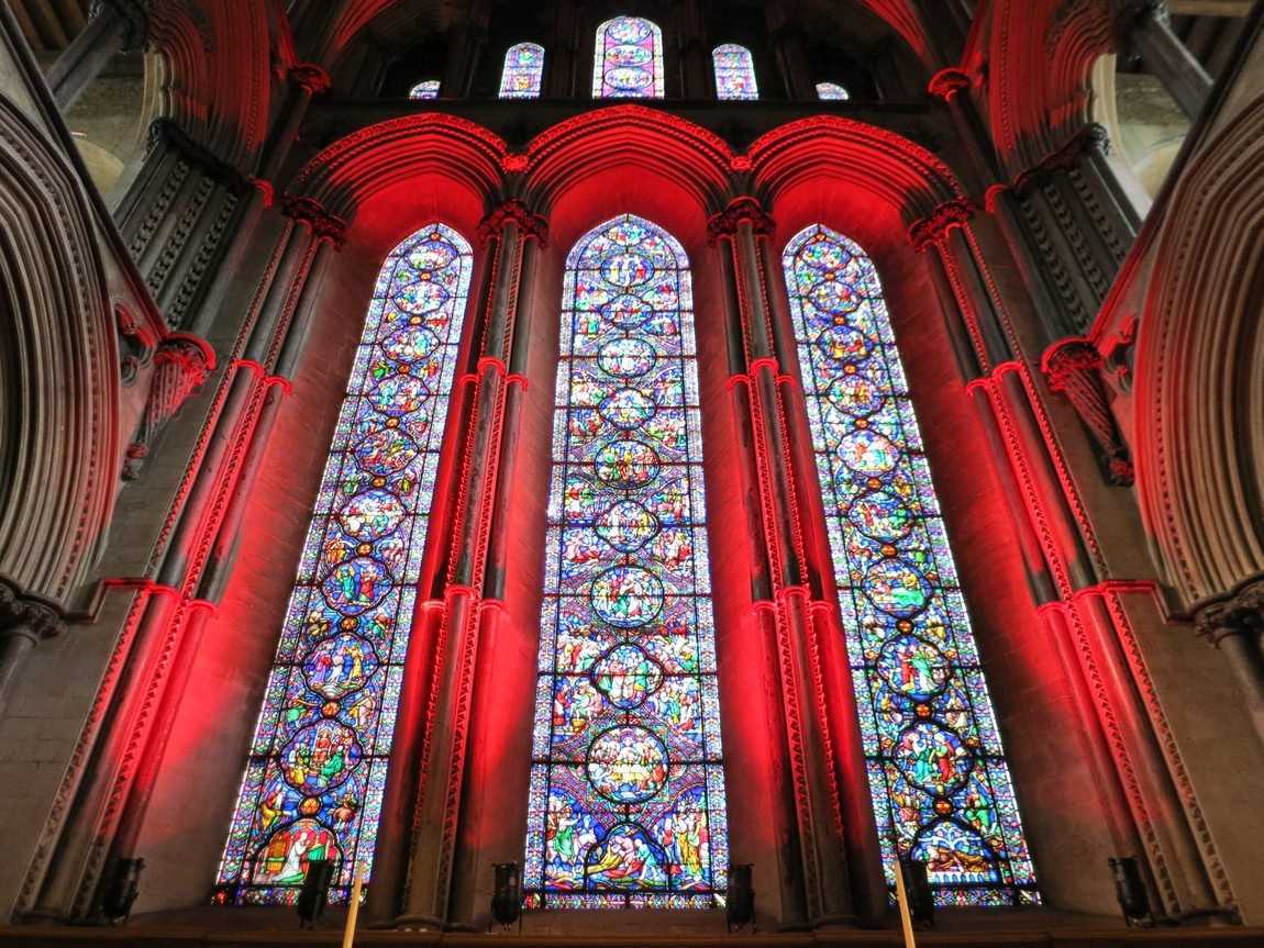 Красивейшие витражи  украшают   окна собора.  Застекление окон  цветным стеклами происходило в 1845 г.. В то время почти не сохранилось средневекового стекла.