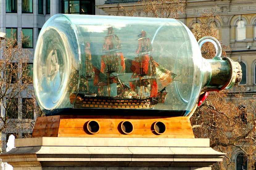 Корабль адмирала Нельсона «Виктори» в бутылке на площади