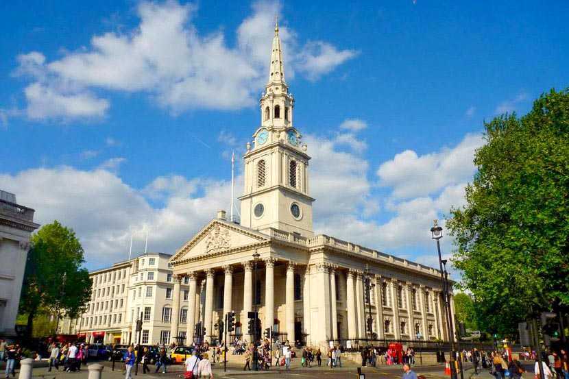 Еще ее называют церковь Святого Мартина «в полях» (когда-то она находилась далеко от центра города). Здание было возведено в 1724 году. Церковь считается одной из самых известных в Лондоне. Ее прихожанами стали члены королевской семьи.