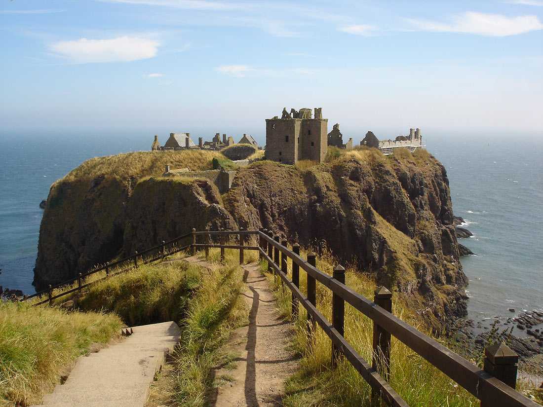 Замок Данноттар расположен на вершине скалы с видом на северо-восточное побережье Шотландии. Сейчас эта средневековая крепость находится в руинах, но у нее богатая история. Она связана с такими известными шотландскими деятелями, как Уильям Уоллес, шотландская королева Мария и Карл II, который бывал там до того, как стать королем. Замок известен тем, что его маленький гарнизон восемь месяцев противостоял армии Кромвеля, спасая драгоценности шотландской короны. Не каждый захочет посетить его, ведь добраться туда можно только поднявшись по лестнице с множеством ступеней.