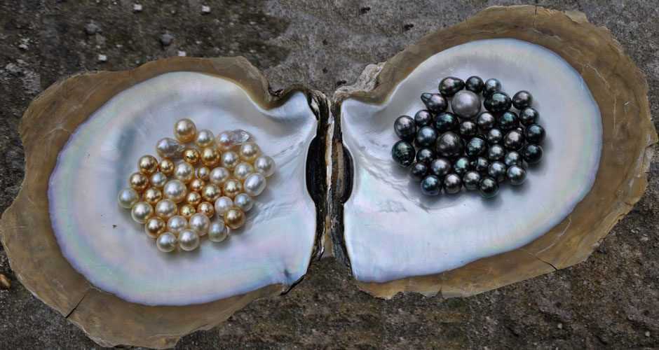 Традиционный жемчуг-молочный, редкие виды – черный и янтарный жемчуг. С помощью современных технологий на ферме производят жемчуг вразличных цветах и формх: например, в форме сердца, капли, квадрата, треугольника и овала.