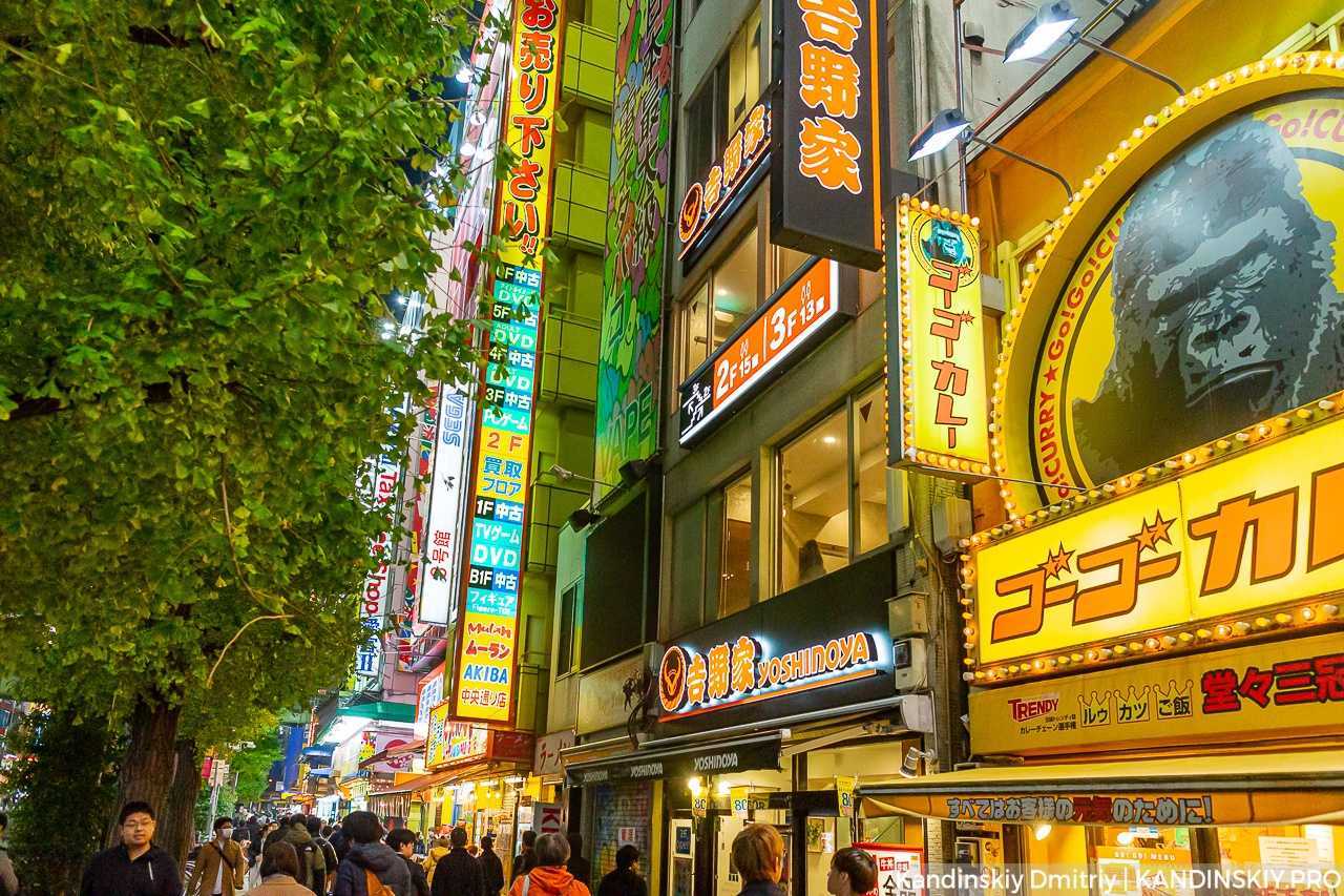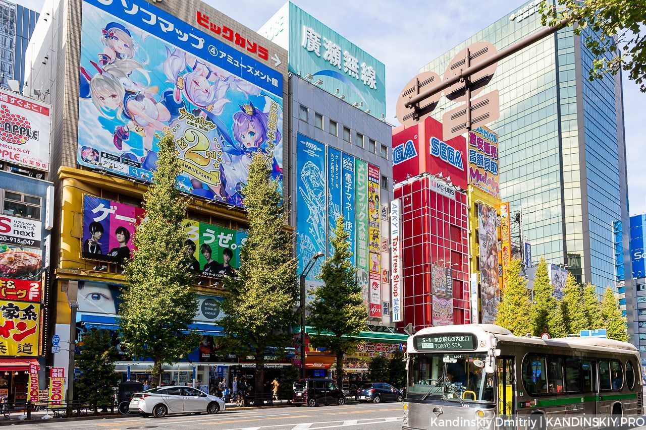 Район Акихабара обязателен для посещения, чтобы познакомиться с «той самой Японией» — где под аниме и игровые автоматы выделены целые здания, есть магазины с любой электроникой, множество необычных кафе и ярких неоновых вывесок.