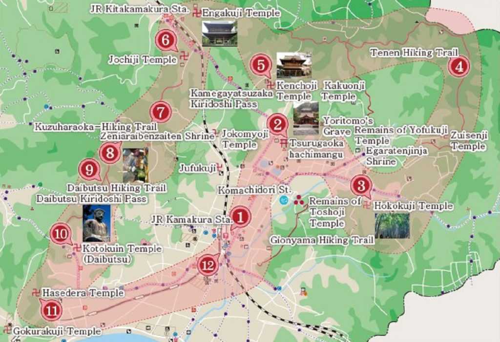 Самый полный маршрут по Камакуре будет представлять собой нечто вроде этого (север + юг):