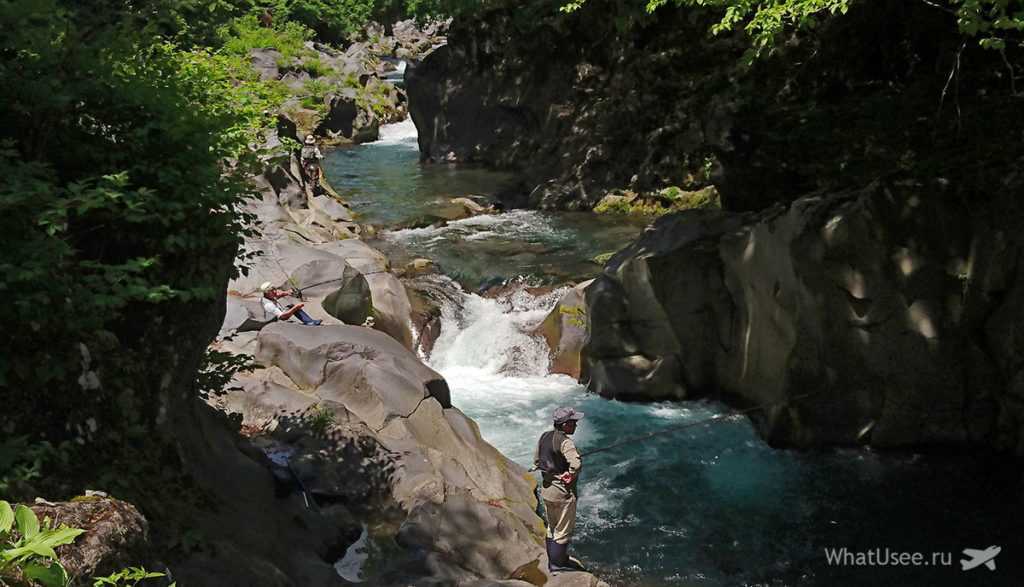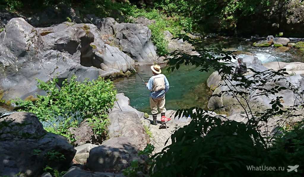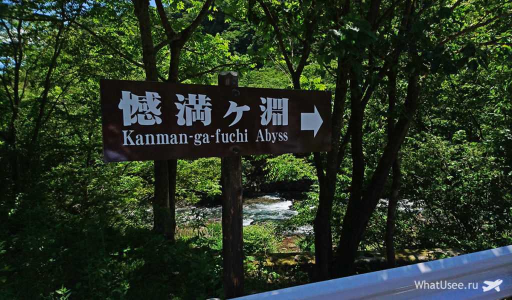 Туристов, идущих из центра Никко, от священного моста к долине Дзидзо, встречает вот такая табличка. Так называется живописное ущелье с рыбаками.