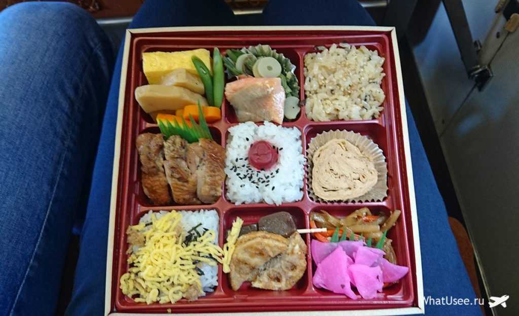 Есть в Японии отличная традиция: есть в поезде обед бенто. Японские бенто бывают разные и включают в себя всякие сезонные и региональные особенности. Этот бенто был куплен на вокзале Никко — в центре справа видна юба, local food из Никко.