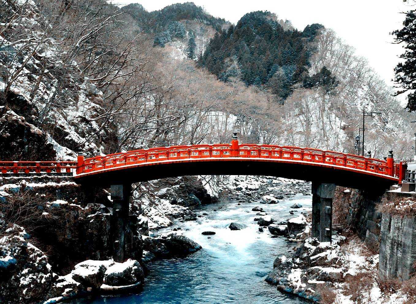Трудно сказать, насколько эта легенда отражает действительную историю, но первый настоящий мост был построен здесь лишь в 1636 году, когда в этих местах уже полным ходом шло строительство культовых сооружений, связанных с увековечиванием памяти Иэясу Токугавы (Ieyasu Tokugawa) — одной из ярчайших фигур японской истории. Мост получил название Синкё (Shinkyo) — Священный мост в память о чуде с монахом Сёдо. Это сооружение представляет собой деревянный, выкрашенный в красный цвет горбатый мостик 28 м в длину и 7 в ширину, опирающийся на два каменных основания в виде арок прихрамовых ворот (тории).