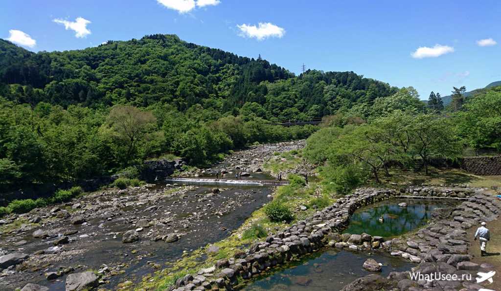 Выходим из долины Дзидзо в небольшой парк. Река тянется дальше, к священному мосту Синкё.