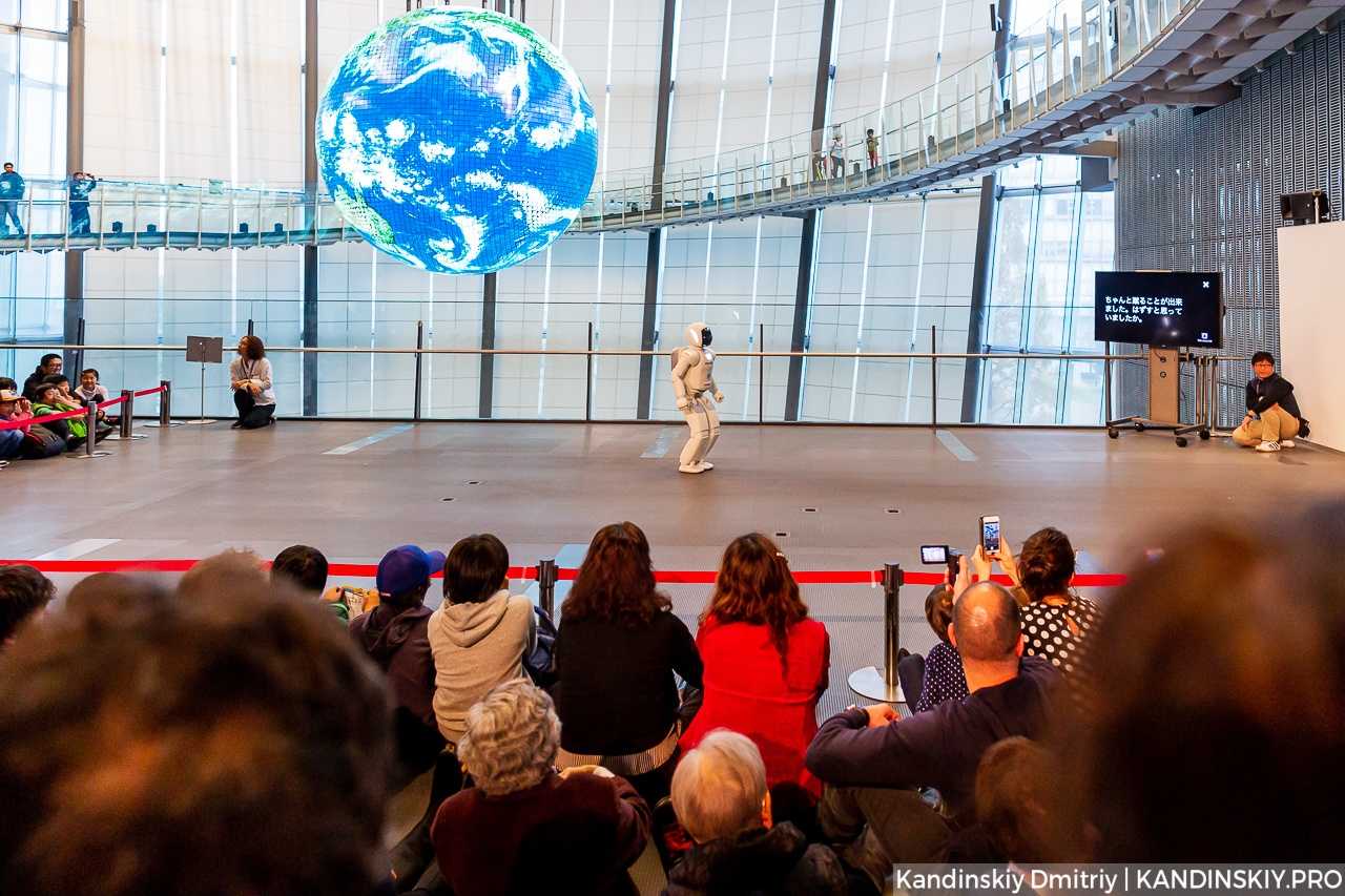 Каждый день перед зрителями выступает робот-гуманоид «Асимо»: что-то рассказывает на японском, поет и играет с мячом.
