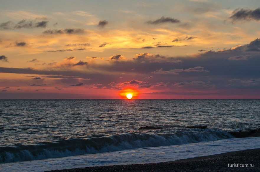 Последним подарком за наши сегодняшние мытарства стал закат. В ожидании электрички мы стали свидетелями конца дня. Тучи, терзавшие нас весь день рассеялись над морем. Алое солнце озарило горизонт, окрасив все в пурпурные тона. Шум прибоя, и волн, накатывающих на гальку. Солнце медленно тонуло в темнеющем море.