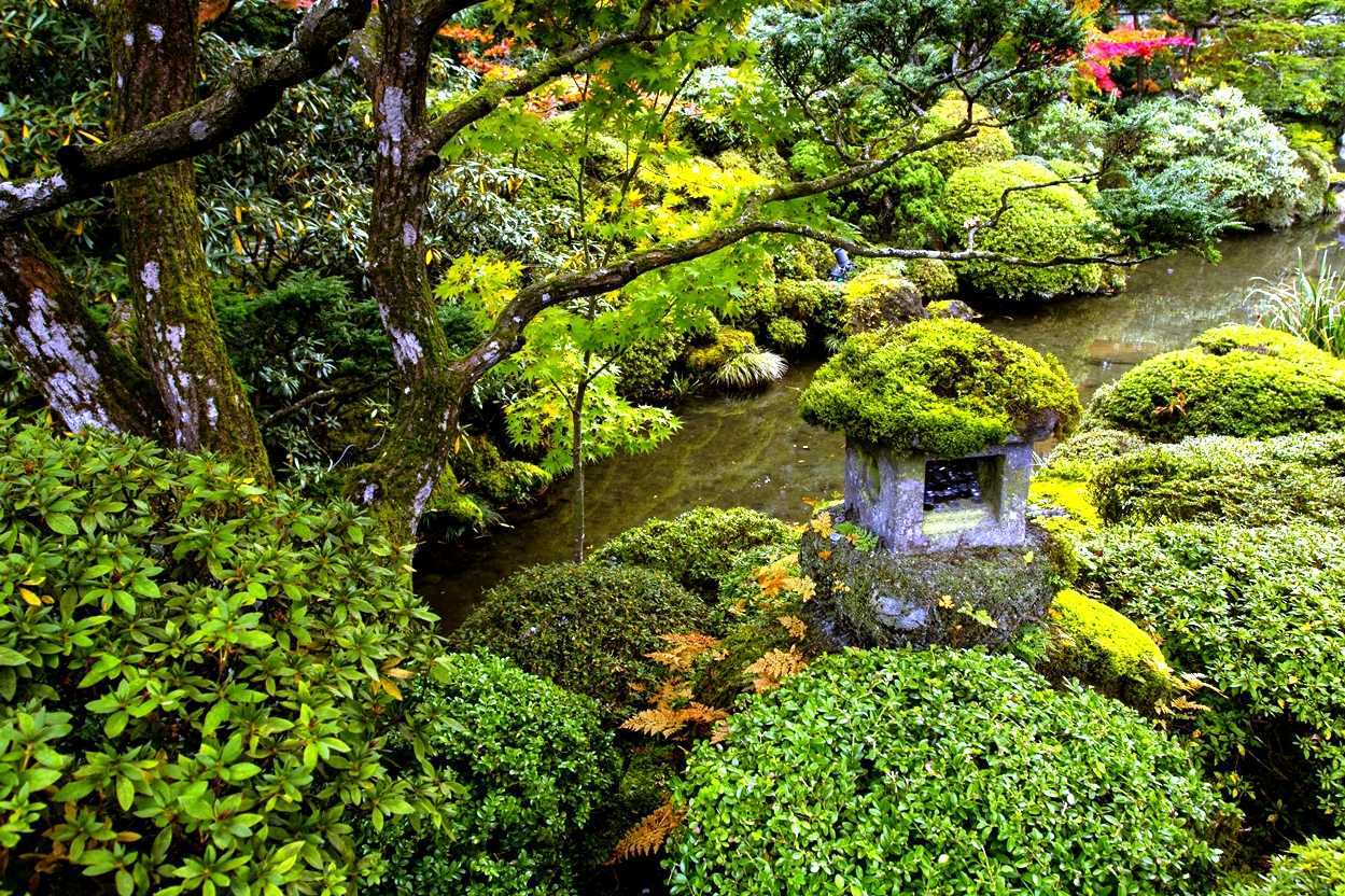 Именно около храма Риннодзи, зацветает особый, редкий вид сакуры – «конгосакура». Их цветы имеют своеобразный золотистый оттенок. В середине сада находится пруд, в котором содержат императорских карпов. Сад украшают каменные фонари, мосты, бамбуковые заборы, пагода и небольшой чайный домик.