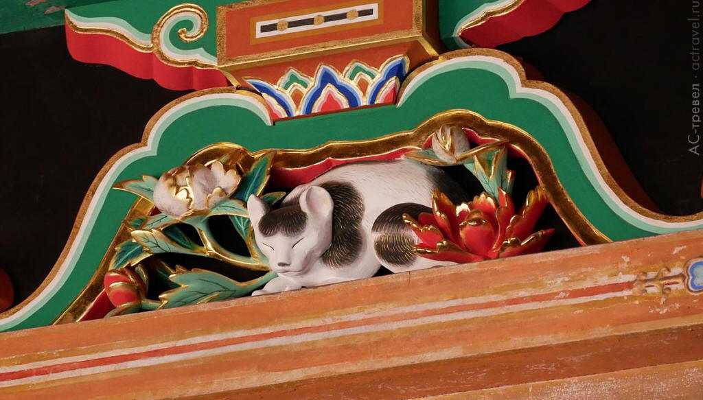 Пышная резьба строений Тосёгу приписывается авторству Хидари Дзингоро. А самая известная фигура, вышедшая из-под резца талантливого Левши — кот, ставший настоящим символом и Тосёгу, и Никко.