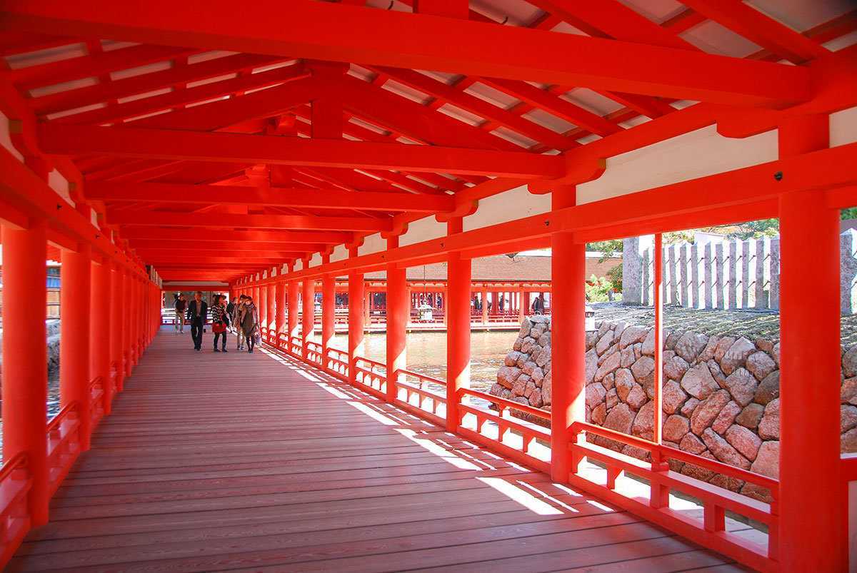 Ицукусима — святилище обожествлённой природы. История Ицукусимы восходит к VI веку, когда на острове появились три богини, дочери синтоистского бога Сусаноо. Вплоть до начала XX века остров почитался как священный, по этой же причине здесь до сих пор нет кладбища, и умерших увозят с благословенной земли. За столетия своего существования святилище неоднократно разрушалось. Его нынешняя конструкция сооружена в 1875 году по образцу храма 1168 года, созданного генералом Тайра Киёмори в честь славного рода Тайра. Храм Ицукусима в ЯпонииПредание утверждает, что 16-метровые ворота Ицукусимы построены из ствола одного-единственного камфорного дерева. За воротами, на самом краю бухты возвышаются бело-красные храмовые строения. Они стоят на сваях и соединены между собой крытыми коридорами, а к острову от них ведёт деревянный резной мост. В комплексе Ицукусима есть залы для богослужений, залы для «очищения» и жертвоприношений, а также открытая площадка, предназначенная для ритуальных танцев. На берегу бухты, в храмовой сокровищнице хранятся 4000 старинных предметов, в разное время пожертвованных святилищу. Среди них — художественно расписанные веера, фарфор, маски, мечи, доспехи и древние манускрипты. Наряду с песчаной косой Аманохасидатэ и заливом Мацусима ярко-красные тории Ицукусимы, «плывущие» по поверхности моря, включены в список «Трёх знаменитых пейзажей Японии». Пребывая на остров, путешественник оказывается среди таких прекрасных клёнов и сосен, что невольно думает: «Может и правда у природы есть душа?». Религия синто обожествляет природу, поэтому деревья здесь не вырубаются. По лесу свободно разгуливают обезьяны и олени, которые считаются посланниками богов.