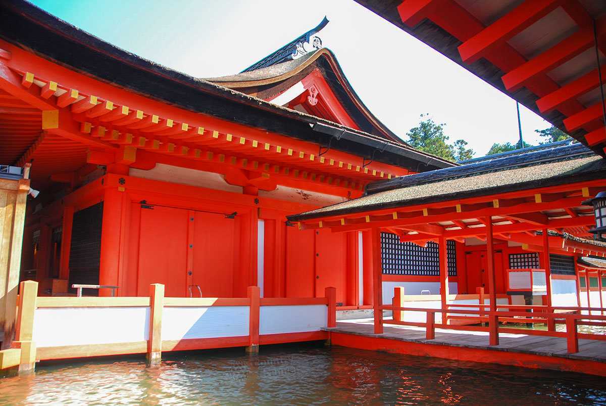 Первоначально Ицукусима был чистым синтоистским святилищем, «где никакие рождения или смерти не могли вызвать загрязнение. Поскольку сам остров считался священным, простолюдинам не разрешалось ступать на него на протяжении большей части его истории, чтобы поддерживать его чистоту. Сохранение чистоты святыни настолько важен, что с 1878 года рядом с ним запрещено рожать или рожать. По сей день беременные женщины должны уйти на материк по мере приближения дня родов, как и неизлечимо больные или очень пожилые люди, чьи переход стал неизбежным. Захоронения на острове запрещены. Чтобы паломники могли приближаться к нему, храм был построен как пирс над водой, так что казалось, что он плывет отдельно от земли. Красные входные ворота, или тории , были построенный над водой по той же причине: простолюдины должны были провести свои лодки через тории, прежде чем приблизиться к святыне.