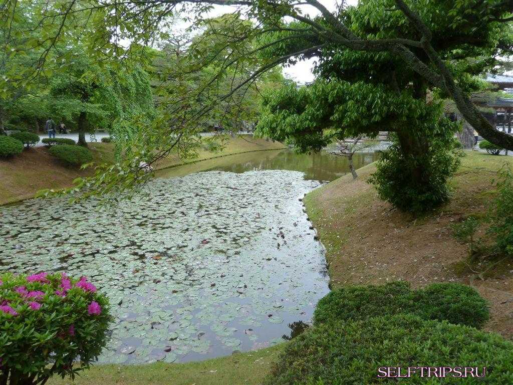и Золотой Павильон (покрытый листами настоящего золота и шикарно отражающийся в воде).