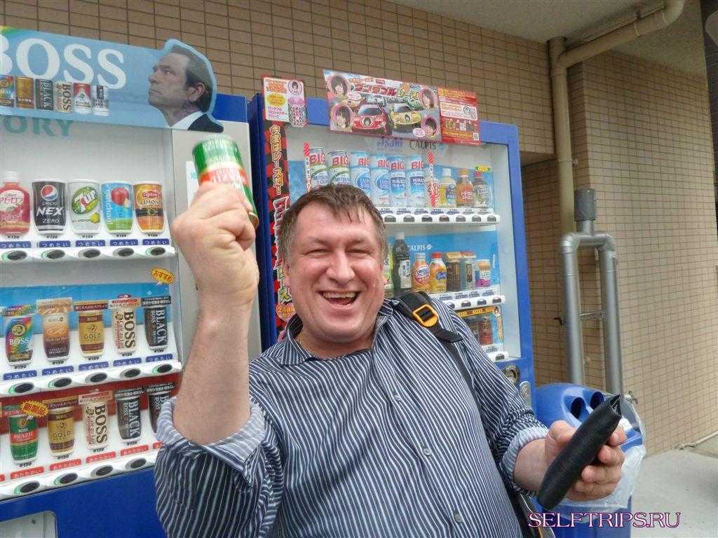 Про покупку кофе из автомата: здесь в Японии на каждом шагу стоят автоматические холодильники с продажей напитков и вот мы захотели кофе, Леша выбрал напиток и ему аппарат выдал горячую банку кофе, мы так обрадовались,