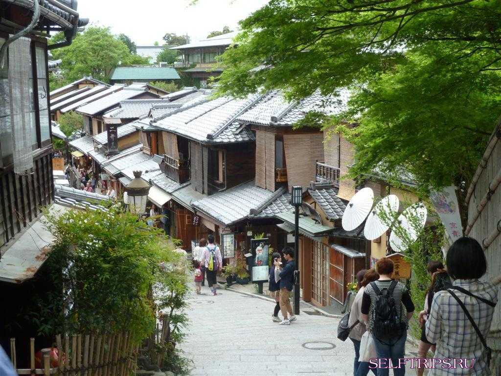 До сих пор на застроенных деревянными домами-матия и харчевнями-идзакаями извилистых улочках Гиона можно встретить гейш (в Киото их называют гэйко) и их учениц-майко – в кимоно, с красочными зонтиками и в деревянных сандалиях-гэта.