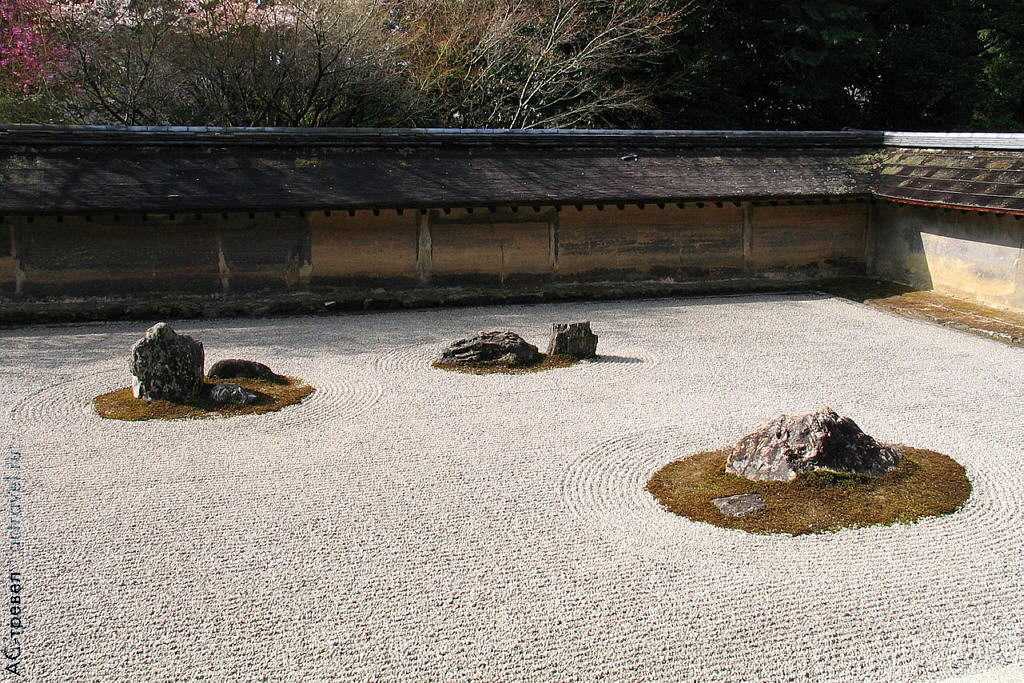 3. Наверное самые знаковые и популярные среди туристов места — Сад камней (где видно только 13 камней из любой точки, а их всего 14 и якобы все 14 камней видит только «просветленный», надо сидеть и медитировать)