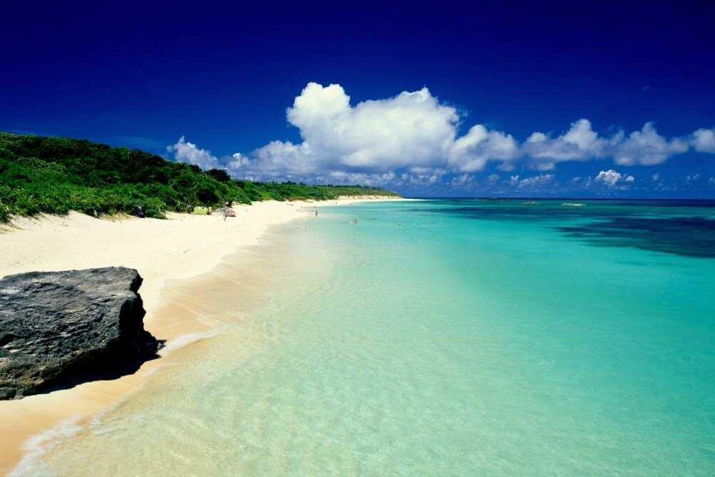 Первое, что бросается в глаза туристу в этом городе- это белые песчаные пляжи с океанами чистого лазурного цвета. Многие японцы из крупных префектур летят на этот остров, дабы искупаться в этом красивом и чистом океане. К красоте этого пейзажа можно добавить множество тропических деревьев, которые украшают берег океана. Такой пейзаж достоин фото на память.