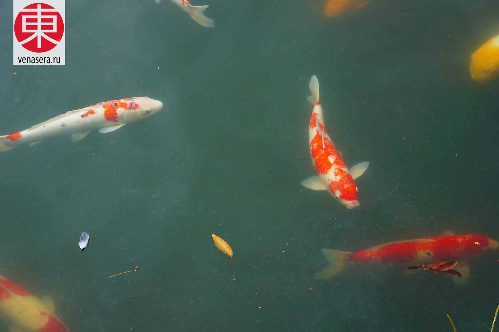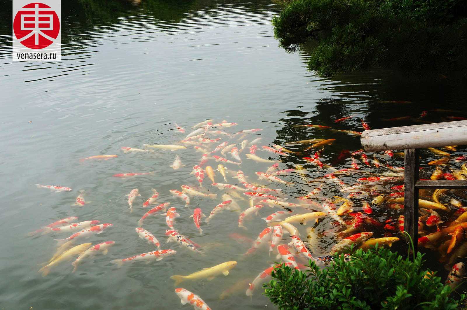 В пруду Сава-но-Икэ (沢の池) есть карпы и можно, около чайного магазинчика, купить корм за 100 иен и покормить.