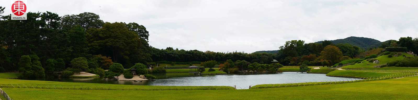 Коракуэн – это сад в стиле Тисэн-Каиюсики-тэиэн. Наверняка мало кто знает, чем отличается этот японский стиль, поэтому вкратце поясню. У данного типа японских садов есть центральный пруд, в котором расположены маленькие островки (цукияма). Они в свою очередь располагаются вокруг большого пруда в центре сада. Таким образом у посетителей есть возможность во время прогулки любоваться пейзажами сада с различных ракурсов.