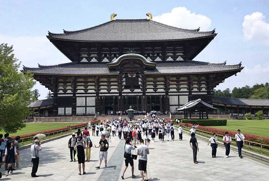 В городе Нара находится один из древнейших буддийских храмов Японии — Тодай-дзи, также признанный крупнейшим деревянным сооружением в мире. Храм был основан в VIII веке, но современный облик приобрёл к началу XVIII века. Широкую популярность Тодай-дзи заслужил благодаря 15-метровой бронзовой статуе Будды Вайрочана, которая является ровесницей храма. При Тодай-дзи открыта сокровищница Сёсоин — в ней хранятся бесценные реликвии. Самые примечательные из них — священные мечи, возраст которых составляет почти 1300 лет. В сокровищнице выставлены драгоценности всех императоров Японии и множество масок театральных представлений Гигаку.
