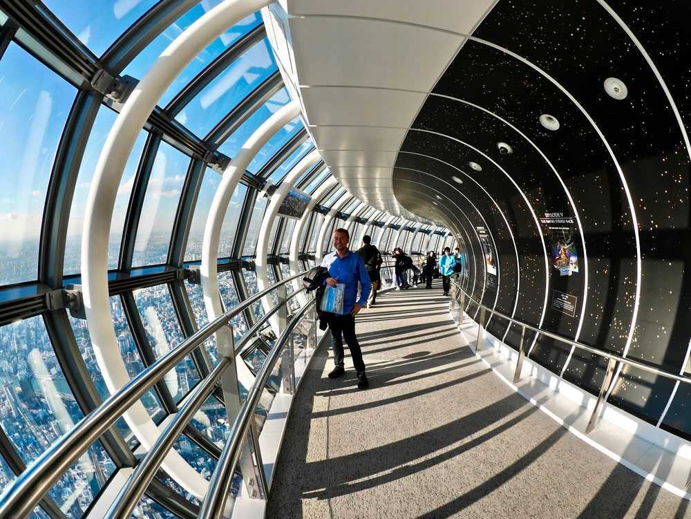 Небесное дерево Токио претендует на звание самого высокого здания в Японии. Шпиль телевизионной башни взлетает ввысь на 634 метра. Для подсветки здания используется только два цвета, сменяющих друг друга через день: голубой и розовый. Туристов привлекает башня главным образом из-за наличия смотровой площадки. Кроме этого здесь есть прекрасный ресторан и торговый центр.