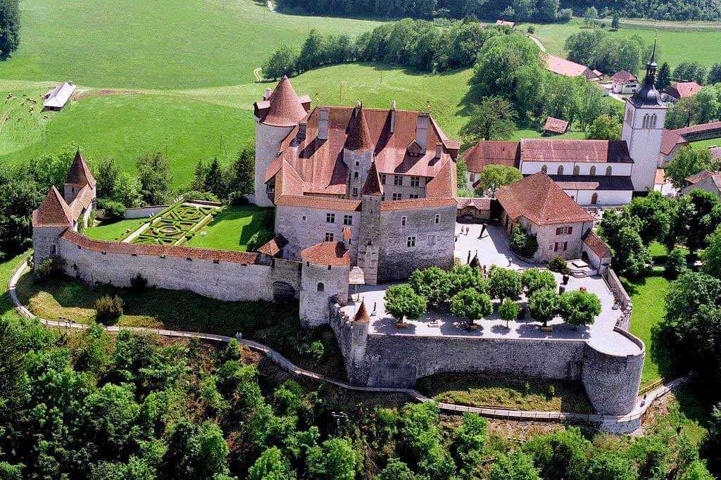 Замок Грюйер гордо возвышается на вершине зеленого холма у подножия впечатляющих Фрибургских Предальп с XIII века. Сегодня в средневековой крепости хранятся престижные коллекции, свидетельствующие о ее долгой и богатой событиями истории. Посетители замка могут отправиться в путешествие сквозь века и открыть для себя множество удивительных сокровищ. К ним относятся драгоценные витражи, датируемые Средневековьем, накидки, принадлежащие рыцарям ордена Золотого Руна Карла Смелого, гобелены, заказанные судебными приставами при Древнем режиме, картины Жан-Батиста Камиля Коро и трубадурские украшения рыцарской комнаты, созданные в Грюйере в 19 веке колонией страстных художников.
